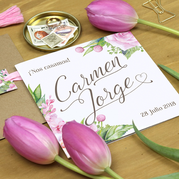 Medidas tarjetón: 15x21,5cm. Sobre premium, rosa palo, 140g, medidas: 16,2x22,9cm.
